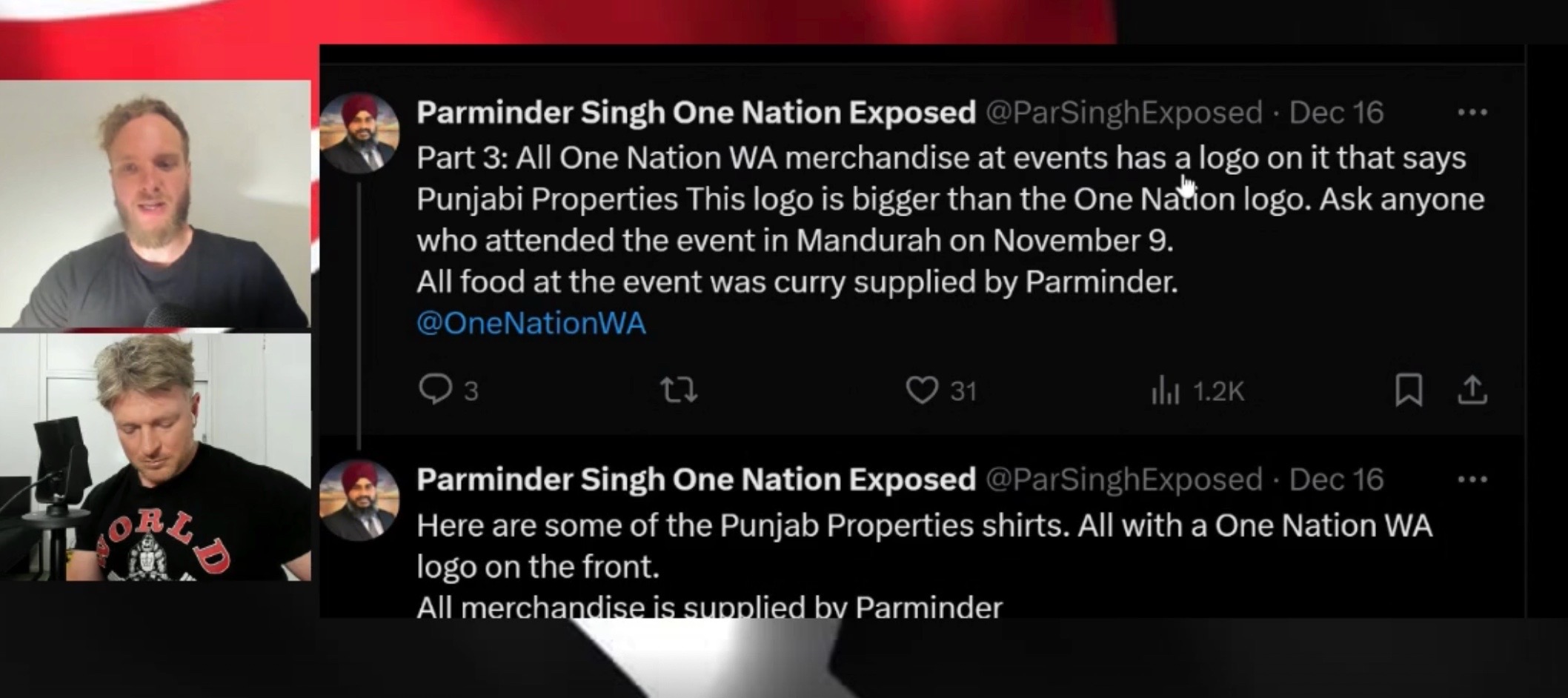 They note a One Nation WA event served curry and displayed “Punjabi Properties” on shirts larger than party branding.