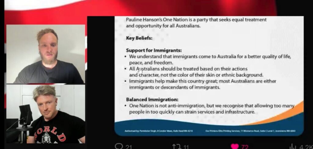 Encourage listeners to keep pressure on One Nation via Twitter replies and to watch for Ben Dawkins’ full statement.