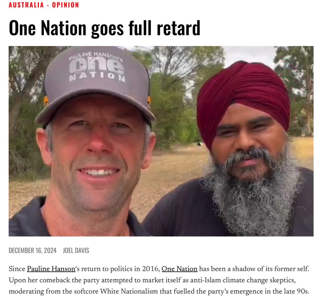 We’ll also discuss the development of the Parminder Singh Gate or Parmindigate, as it’s been called on Twitter, where, yeah, One Nation have been running this Indian candidate and it’s caused, I mean, the story., … There’s so many new elements to the story. I wrote an opinion piece on it a few days ago for The Noticer and there’s even more elements of the story coming through now. So we’re going to talk about that.