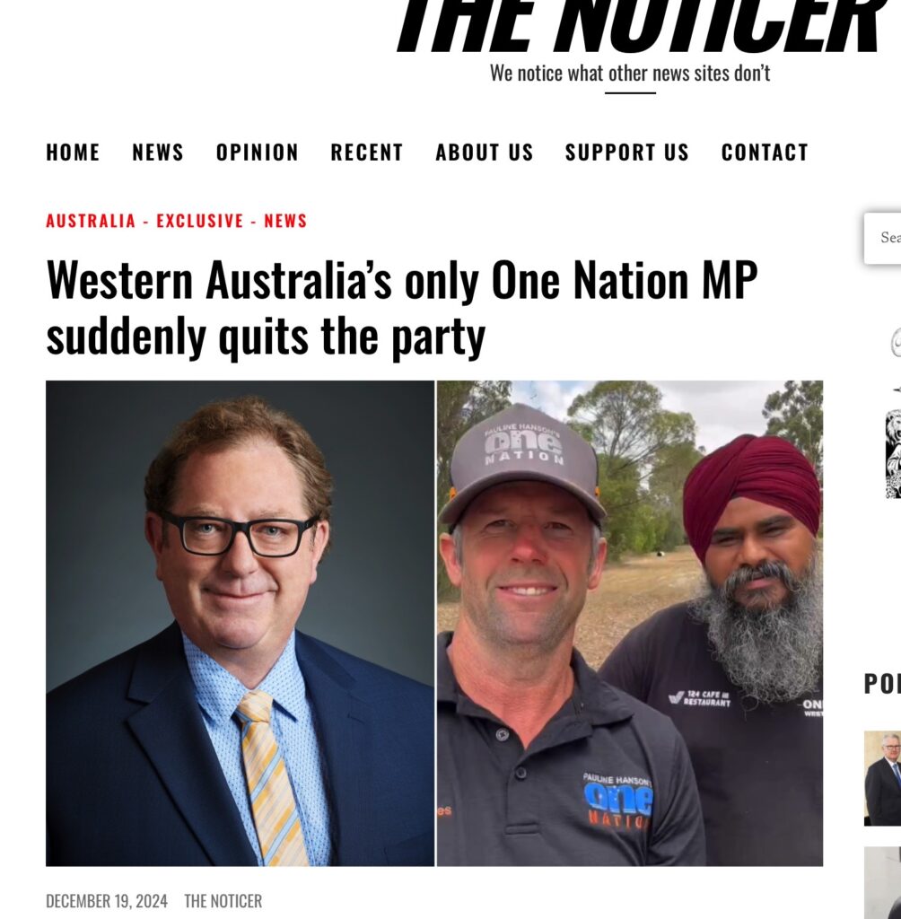 They shift to “Parmindagate”: One Nation WA running Sikh businessman Parminder Singh as an upper-house candidate.